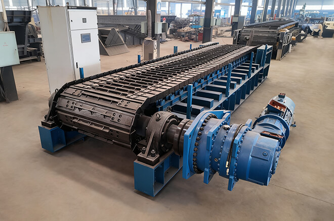 The apron feeder is a reliable feeding method for when the material to be conveyed is lumpy, abrasive, heavy, high temperature. it is a feeding solution more robust than a traditional belt feeder is required.